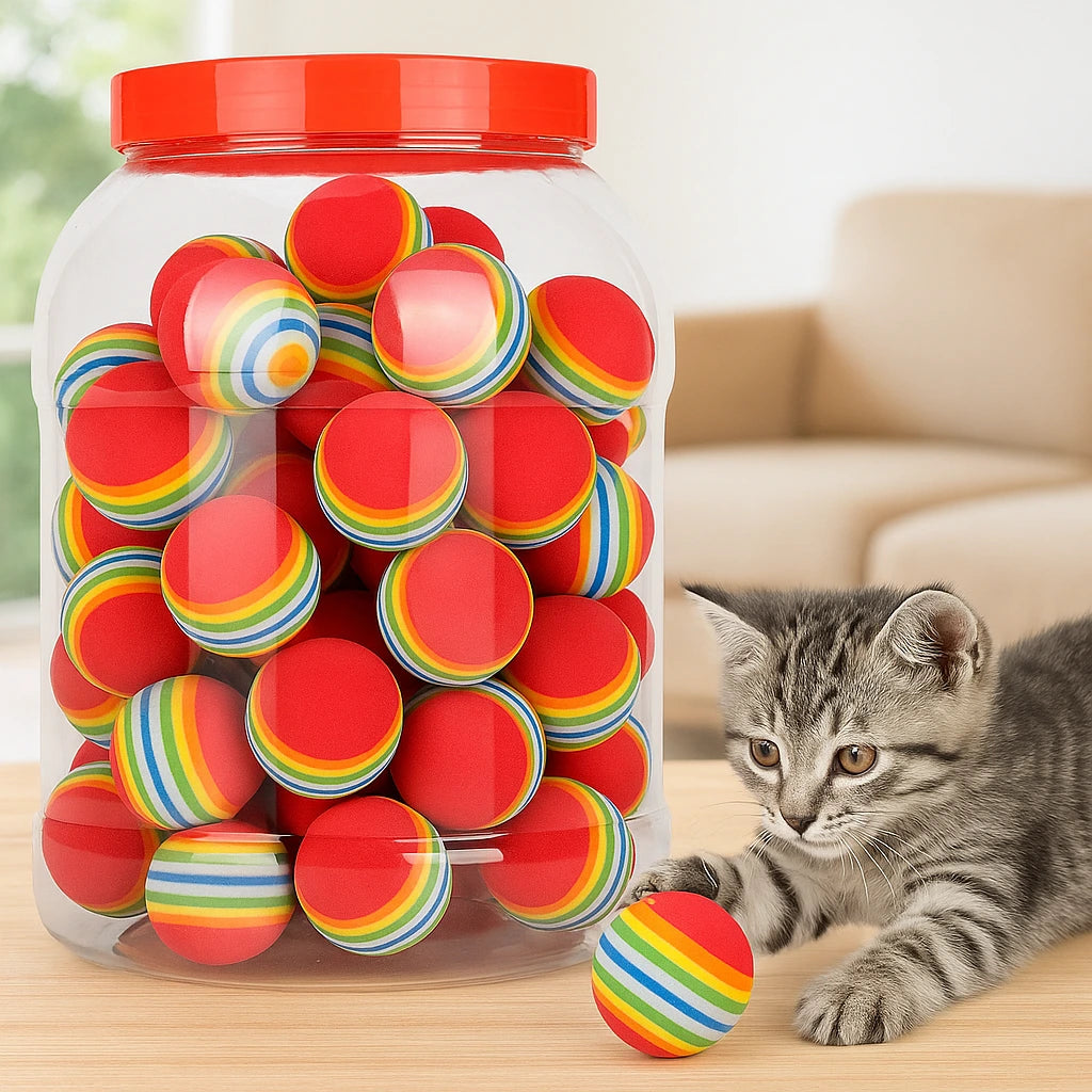 🎾 Färgglada Regnbågsbollar för Katt & Hund – Lekfulla, Lätta & Studsande! Dessa mjuka EVA-bollar är perfekta för både självständig och interaktiv lek. De väger nästan ingenting men studsar oväntat, vilket triggar djurets jaktinstinkt och håller det sysselsatt i timmar. Perfekt för både katter och små hundar.