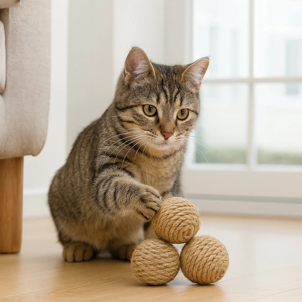 Katter som gillar att leka sjÀlvstÀndigt, rulla bollar och klösa naturliga material.