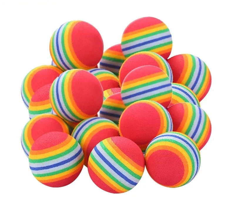 🎨 Färgglad regnbågsdesign – synliga och lätta att hitta 💨 Mjuk EVA-skumplast – säker och tyst på alla ytor 🎯 Studsande effekt – lockar till jakt och lek 🐾 Lättvikt – enkel att bära, kasta och rulla 👯 För självlek eller tillsammans med dig – idealisk för aktivering 📦 Finns i 10, 20 eller 30-pack – perfekt för hem med flera husdjur