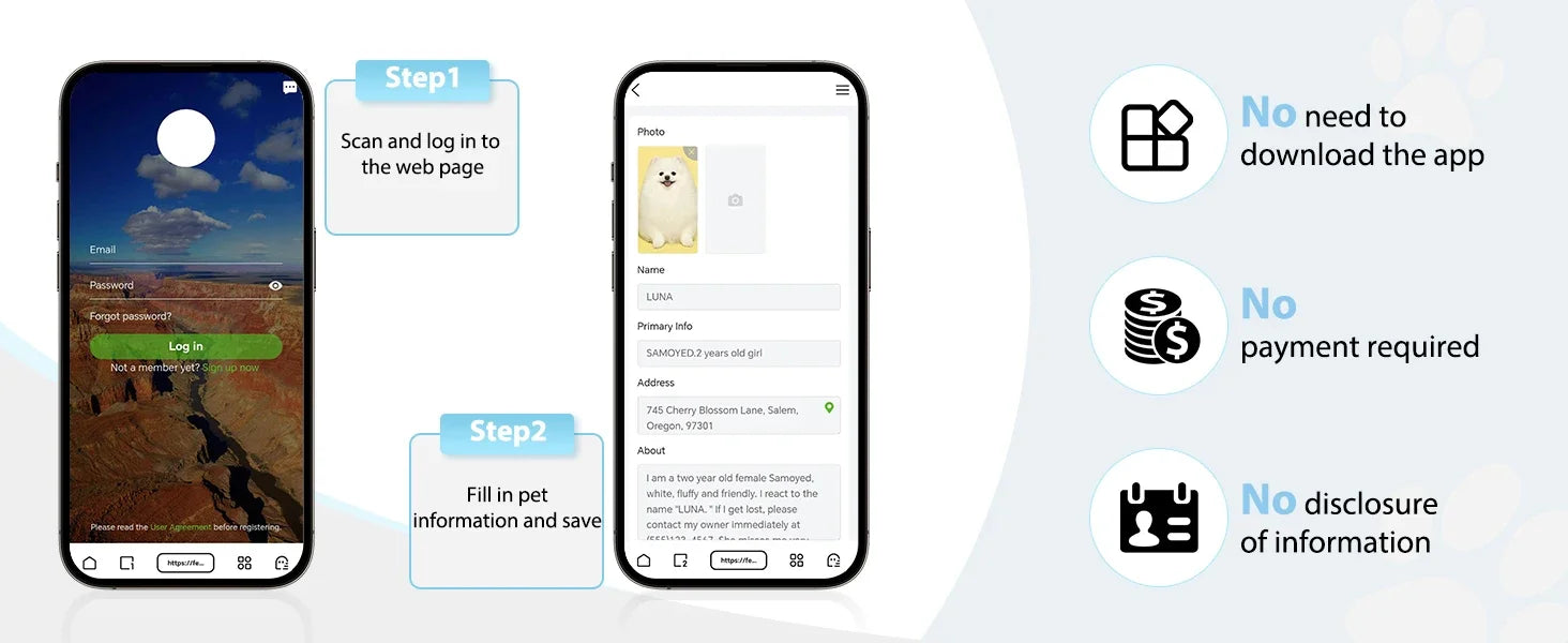 Material: Reflekterande PU-lĂ€der, elastiskt band, metallspĂ€nne, QR-tagg i rostfritt stĂ„l Passar för halsstorlek ca 19â30 cm
