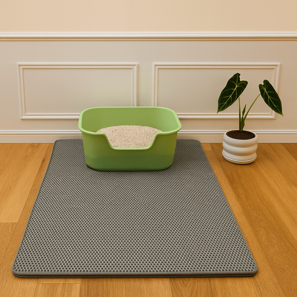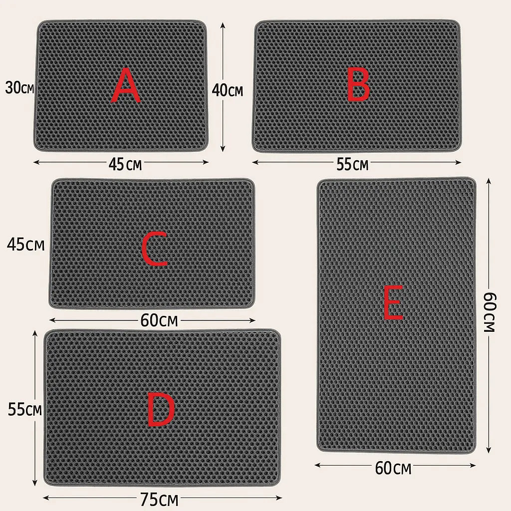 Ge din katt en renare och bekvämare miljö med denna smarta kattlådematta i mjuk EVA. Den dubbla lagerdesignen fångar upp kattströ direkt från tassarna, samlar upp spill och håller golvet rent – perfekt för alla typer av kattlådor.